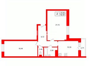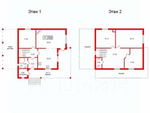 Второй этаж: 3 комнаты: 26,7 кв.м., 19,1 кв.м., 17,8 кв.м., санузел 3,5 кв.м.