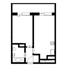 Дом 76,5 м.кв. с просторной верандой, прихожей, кухней-гостиной и санузлом на первом этаже.