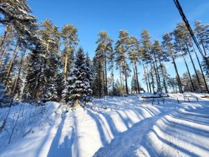 Участок в окружении вековых сосен и елей, всего в 250 метрах от собственного песчаного пляжа.