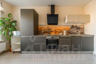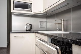 Установлен кухонный гарнитур с необходимой техникой, барная стойка, много места для хранения вещей, что редкость для студий, и большой удобный диван.