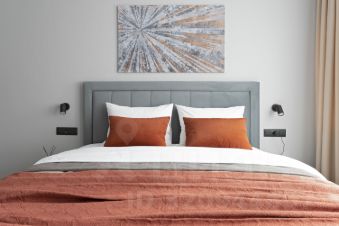 Общее оснащение номера: кухня с варочной поверхностью и вытяжкой, СВЧ- печь, капсульная кофе-машина, чайник, набор посуды, холодильник, кровать (1 двуспальная или 2 раздельные) с высококачественными ортопедическими матрасами, полный комплект текстиля, блэкаут-шторы, ТВ, умная колонка, рабочая поверхность, компактные кресла, система хранения, собственная ванная комната с душевой, фен, утюг, гладильная доска, сейф, кондиционер.