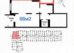 Общая площадь квартиры составляет 46 кв. м, жилая площадь — 25 кв. м, площадь кухни — 4,6 кв. м. Квартира расположена на 7 этаже 15-этажного кирпичного дома, построенного в 2019 году. Высота потолков — 2,9 метра.