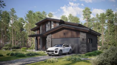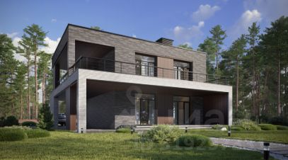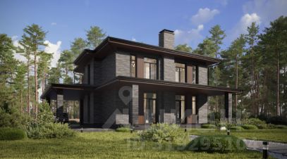 Двухэтажный дом в стиле Райт, площадью 302 м², расположенный на участке 15 соток