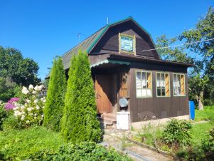 крепкий дачный дом из бруса, обшит вагонкой, расположен на красивом участке, на первом этаже находятся веранда, кухня и 2 небольшие комнаты, второй этаж не благоустроен, там есть возможность сделать еще одну полноценную комнату, отопление печное, плита газовая от газовых баллонов, колодец с питьевой водой, баня, в бане есть душевая, бойлер, установлена стиральная машина, хорошая печь на дровах, большая теплица из поликарбоната. Садоводство небольшое, уединенное, в пешей доступности красивое озеро, лес в двух минутах ходьбы от участка. Элекричество 7 кВт, взносы 12 000 ежегодно. Магазин расположен в самом садоводстве, на соседней улице.