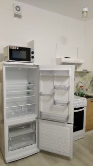 В квартире есть все необходимое, холодильник, стиральная машина, микроволновая печь, раскладной диван, шкаф, пристенная горка.