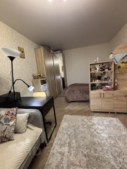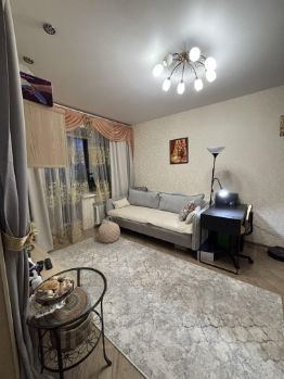 В квартире сделан качественный евроремонт. Установлена современная мебель и техника, которые остаются новым владельцам. Планировка продумана до мелочей, поэтому в квартире комфортно и уютно. Санузел совмещенный, выполнен в современном стиле. Есть лоджия, где можно организовать зону отдыха.
