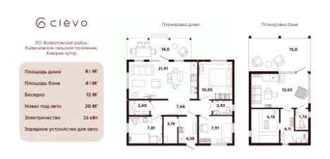 Планировка: Прихожая, просторная кухня-гостиная с печью-камином, две спальни, два санузла, кладовая, котельная.