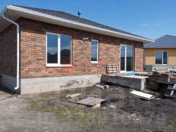 Планировка дома: просторный коридор, 3 комнаты, котельная, комната для с/у и кухни.