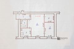 Площадь квартиры согласно технической документации 45.8 кв. м. Планировка включает: две жилые комнаты 19.8 и 8.0 кв. м, большую кладовую (гардеробную) 4.7 кв. м, кухню 6.0 кв. м и совмещенный санузел. Балкона нет. В квартире недавно заменены все окна.