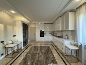 Территория благоустроена: ландшафтный дизайн (крупномеры, плодовые деревья, отдельно от дома банный комплекс, зона отдыха, комната для помощника по дому со всеми удобствами, гараж на два автомобиля с автоматическими воротами.