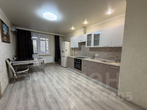 Просторная кухня-гостиная, оборудована техникой, включая холодильник.