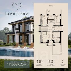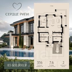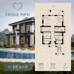 Продается дом общей площадью 385.4 м² на участке 8.2 соток в коттеджном поселке СЕРДЦЕ РИГИ, всего в 18 км от МКАД.
