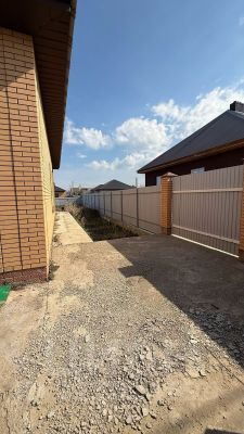 Решение: Вам не придется тратиться! Фундамент и столбы под забор уже залиты, площадка под парковку и дорожка — забетонированы. Осталось только смонтировать профлист.