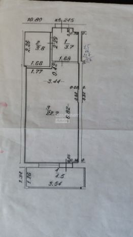 Общая площадь квартиры 33.74 м кв.: комната 22.7 м кв., лоджия 3.54 м кв., совмещенный санузел 3.8 м кв., коридор 3.7 м. кв., где есть место для расположения большого встроенного шкафа-купе.