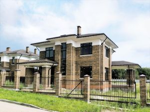Готовый коттедж под отделку 260 кв.м. на участке 18 сот в жилом поселке бизнес-класса "Монреаль". Крайний участок, граничит только с одним соседом. Построен из материалов высокого качества: монолитный фундамент; внешние стены - термоэффективный керамический блок, фасад выполнен из облицовочного кирпича Браер (Баварская кладка) с элементами штукатурки и декора; перегородки кирпич, крыша мягкая кровля, ламинированные стеклопакеты Rehau; залита монолитная лестница; установлена входная дверь с терморазрывом; высота потолков 1-го и 2-го этажа 3.5 м.; залита монолитная дорожка к дому.