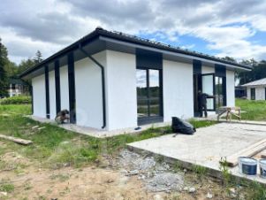 Стены возведены из газобетонного блока D500 толщиной 300 мм.
