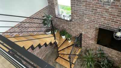 На первом этаже большая кухня-гостиная, сан узел, просторная прихожая, шкаф купе с системой хранения, бойлерная.