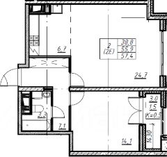 57 м²,