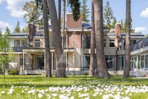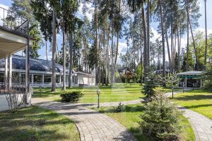 На участке дополнительно расположен гараж с квартирой для персонала. Зона отдыха перед бассейном и беседка BBQ. Русская баня. Украшением лесного участка служат декоративные и цветущие кустарники, плодовые деревья и шикарный газон.