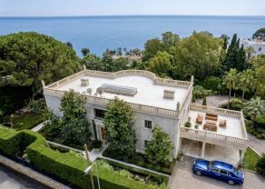 Просторный особняк выполнен в классической средиземноморской архитектуре: колонны, изящные арочные окна, благородная терракотовая черепица, натуральный камень.