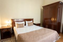 Наши гости могут воспользоваться услугами питания четырехзвездочного отеля, расположенного в том же комплексе.