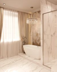 В отделке использованы дорогостоящие и натуральные материалы, напольное покрытие — паркет.