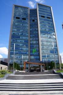Дизайн фасада, входной группы, общих зон БЦ, концепт благоустройства территории разработаны известной студией дизайна SCG INTERNATIONAL. В отделке 19-тиэтажного здания в большом количестве использованы материалы из натурального камня, дерева и стекла, разработан специальный проект озеленения пространства перед зданием и непосредственно в здании.