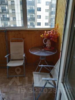 В комнате мягкий диван / раскладывается / кресло, стенка. На лоджии круглый столик, два кресла. / лоджия застеклена./ В кухонной зоне расположен стол, две табуретки; зона моечная, и для приготовления пищи- варочная электрическая панель.