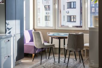 Это не просто квартира бизнес-класса. Это пространство, где свет становится главным декоратором: окна в пол, французские балконы и продуманная планировка создают атмосферу, в которой хочется жить.