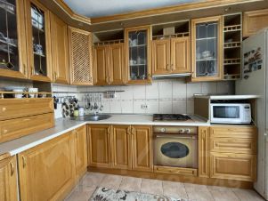 В квартире выполнен качественный ремонт, имеются два просторных санузла с автономной системой водонагрева и качественной сантехникой известных брендов.. При входе находятся два больших шкафа-купе, обеспечивающие достаточное количество мест хранения. Кухня-столовая оборудована на заказ мебелью фабрики UVAYU и оснащена техникой премиум-класса.