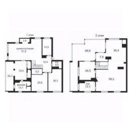 2 этаж спальня 19,3 кв.м с гардеробной 5,5 кв.м и будуарной комнатой 18,2 кв.м, кабинет 17 кв.м. Комнаты с выходом на балконы, совмещенный санузел.