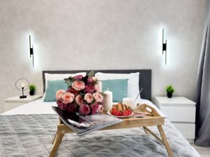 Наши апартаменты оснащены всем необходимым для комфортного пребывания: утюг, гладильная доска, стиральная машина, сушилка для белья, фен. И, конечно же, бесплатный Wi-Fi и телевизор для вашего удобства.