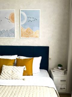 Квартира очень стильная и современная, в гостиной расположена двуспальная кровать, раскладной диван, ж/к телевизор, подключен wi fi и спутниковое телевидение. Кухня полностью оборудована всем необходимым для приготовления и хранения пищи. Ванная комната в идеальном состоянии. Квартира оснащена всем необходимым для комфортного проживания, включая: чай, сахар, шампунь, гель для душа, мыло и другие принадлежности. Предоставляются полные комплекты постельного белья и комплекты полотенец. Уважаемые гости, для Вашего удобства и безопасности все наши квартиры являются некурящими.