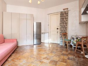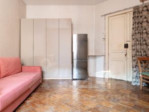 Площадь комнаты 20,8 кв.м, потолки 3,37 м. Окно выходит в тихий и чистый двор. Часть мебели и стиральная машина останутся покупателю.