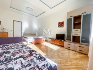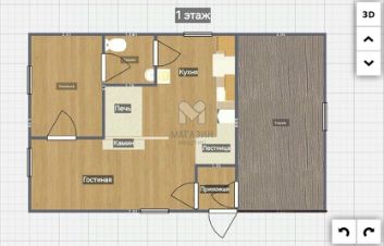1й этаж: просторная гостиная, кухня, санузел, гараж для автомобиля с входом прямо из дома. Высокие потолки (2,7 м), большие окна, внутренняя отделка вагонкой.