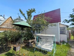 Высажены цветы, фруктовые деревья и кустарники, имеется теплица.