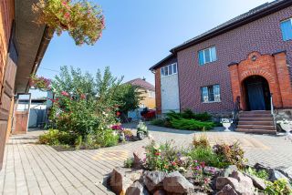 Коттедж стоит на участке 14 соток. На участке есть небольшая баня и хозблок. Придомовая территория засажена декоративными растениями, есть место под небольшой огород.