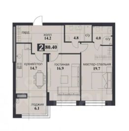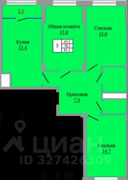 Просторная, светлая кухня-гостиная и три отдельные комнаты могут разместить даже большую семью.