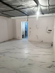 Полы были демонтированы до основания, залита новая стяжка и проложен теплый пол по всей квартире, уложен керамогранит.