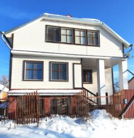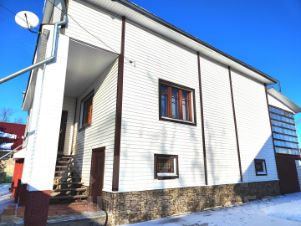 Дом надежно утеплен базальтовой минватой (плотность 32) с ветрозащитой и облицован французским сайдингом.