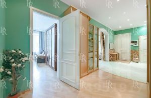Корпусная мебель, гардеробные шкафы, комоды, консоли и входная дверь выполнены на заказ по уникальной технологии мастерской Mrs Ruby.
