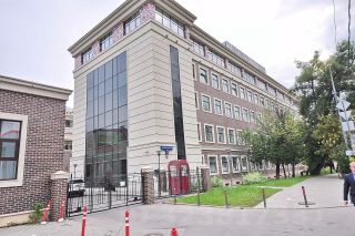Прилегающая территория оформлена с использованием элементов ландшафтного дизайна. Атмосферу парка в английском стиле, разбитого возле зданий центра, дополняют узнаваемые характерные детали: старое английское авто и красная телефонная будка, традиционная для лондонских улиц.