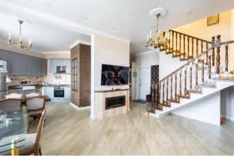 Планировкой предусмотрены: 2 спальни, большая кухня-гостиная с дровяным камином, 2 совмещённых санузела, бойлерная, просторная прихожая, а также веранда на заднем дворе. Дом готов к проживанию и полностью укомплектован всей необходимой мебелью и техникой на кухне.