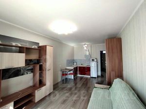 Квартира полностью укомплектована и продаётся со всей мебелью и техникой, представленной на фото: кухонный гарнитур с современной бытовой техникой, стенка, диван, оборудованная гардеробная, холодильник, стиральная машина и т.д. Наличие застекленной лоджии добавляет дополнительное функциональное пространство.