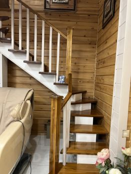Второй этаж покрыт качественным натуральным паркетом в хорошем состоянии,двери из красного дерева,потолки украшены лепниной из натурального гипса,по стенам и потолкам требуется косметический ремонт