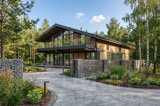 Этаж 1: холл, гардеробная, санузел, прихожая, гостиная, каминный зал с выходом на террасу , кухня-столовая с выходом на террасу.