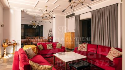 На территории 24 сотки расположены: юрта с камином, барбекю-зоны, гараж на 2 автомобиля с квартирой для персонала. Выполнен ландшафтный дизайн: обустроен пруд с водопадом, уличные светильники, проложены дорожки, высажены многолетние деревья, которые скрывают дом от посторонних и создают атмосферу максимальной приватности.