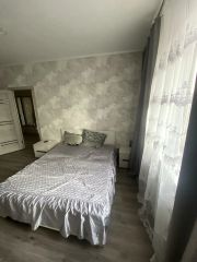 В каждой комнате полные комплекты мебели, на 2-х спальных кроватях качественные матрасы. Большой обеденный и кухонный уголок, раскладной диван, стулья.
