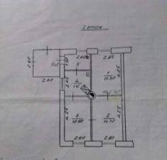 В доме 3 раздельные комнаты, кухня 8 кв. м, кладовая, коридор, сан.узел совмещенный: ванная, туалет.