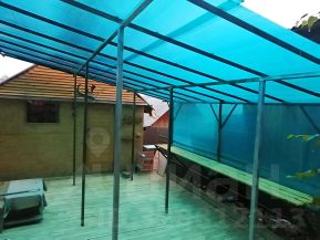 Территория благоустроена, Участок выложен плитняком - площадка перерд гаражом, дорожки, перед вторым входом. Освещение на участке - перед домом и на веранде. У дома 3 веранды - откратая, под крышей и закрытая с видом на горы.